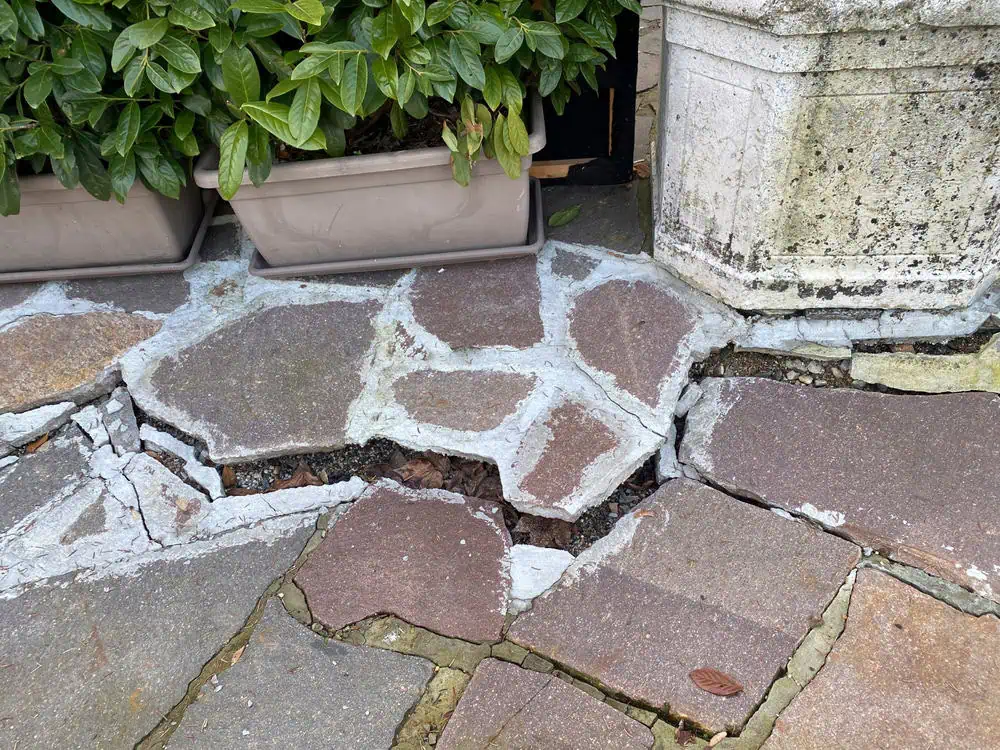 Replace broken slabs, re-level surfaces and fix drainage problems.